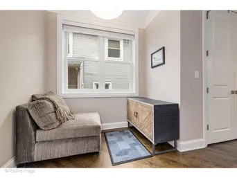 Prime Southport Corridor, just a short walk from Blaine Elementary and nestled on a tree-lined street, this Greenview Ave. home is perfectly positioned in the most desirable pocket. The interior features 9-foot ceilings and a thoughtfully designed open layout that maximizes natural light. The living area centers around a gas fireplace with built-in cabinetry. The chef's kitchen is outfitted with Whirlpool, Maytag, and Bosch appliances. Custom millwork, solid core French doors, and Elfa-organized closets add tailored functionality throughout. The primary suite includes a spa-style bath with heated floors, floor-to-ceiling tile, and a rain shower. A sanctuary rooftop deck, shared with only two other east-facing units, spans approximately 900 square feet and is equipped with a built-in grill perfect for hosting summer gatherings. Additional highlights include one deeded parking space in the attached garage and easy access to the Southport 'L' station, with neighborhood restaurants and shops just a short walk away.