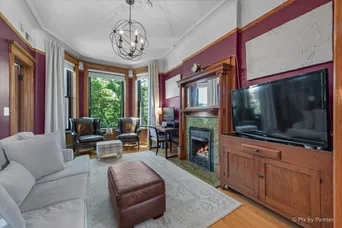 Beautiful top-floor greystone in a prime Lakeview location-where timeless charm meets thoughtful modern updates. This sun-filled 2-bedroom, 1-bath home blends vintage character with recent renovations, all set on a quiet, tree-lined one-way street just moments from the Wellington Brown/Purple Line, shops, and restaurants. The remodeled kitchen features 42" custom white cabinetry, marble countertops, a large island, and newer stainless steel appliances including a 5-burner stove, pyramid-style range hood, and under-counter wine and beverage fridge. The kitchen flows seamlessly into the integrated family room, creating a true gathering space ideal for entertaining. The bathroom was fully updated in 2019 and offers a marble vanity, modern tile, accent niche, and a deep soaking tub with spa-style showerhead. The master bedroom includes a walk-in closet with built-in organizers, picture frame molding, and a perfect balance of elegance and practicality. The second bedroom offers generous closet space, while the sunroom off the kitchen provides a bonus flex space-great for a second lounge, office, or reading nook. The home features gorgeous original woodwork throughout, including a built-in hutch, 9-foot tall pocket doors, glass transoms, crown molding, and 11-foot coved ceilings with intricate medallions. Natural light floods in from east, south, and west-facing windows, thanks to the top-floor position and only a 2-story building next door. All windows were replaced in 2024, adding comfort and energy efficiency. Additional features include newer light fixtures throughout, new furnace (2016), and roof resurfacing and tuckpointing (2023). Free laundry in the basement (with internal stair access) includes two washers and two dryers, one of each brand new in 2024 and 2025. Two large private storage spaces are included. A shared outdoor green space behind the building offers a serene spot for grilling or relaxing, complete with table and chairs. Located just a short stroll from Wrigley (yet far enough to avoid game-day crowds), Southport Corridor, Lake Michigan, and Wiggly Field Dog Park. You're steps from beloved local spots like Panes Bread Cafe, DMK Burger Bar, Fish Bar, Osmium Coffee, and Vaughan's Pub-plus quick convenience at South Loop Market just 1.5 blocks away. This rare Lakeview gem combines classic craftsmanship with updated functionality, unmatched light, and a layout that lives large. Don't miss your chance to own a true top-floor treasure.