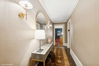 Welcome to The Barry, one of East Lakeview's prestigious pre-war high-rise buildings, designed and built by Robert S. De Golyer (architect) and Paschen Brothers (builder) in 1924-1925. Entering the building, you will be greeted by 24-hour door staff leading you to a gracious building lobby, which is beautifully furnished and appointed with a gas fireplace. The elevator will take you to the 11th floor and a semi-private, elegantly designed elevator lobby shared with just one neighbor. Apartment 11D centers around a gracious foyer, which leads you to all areas of the approximately 1800 square feet of living space. Immediately upon entering, you know you are about to see something very special. Whimsical, lovingly designed, and smart with modern features and old-world charm. The expansive living room is so welcoming with a gas-log fireplace and built-in features. The dining room is just back through the foyer and is the perfect space for entertaining and large enough for dual purposes. Adjacent to the dining room and leading to the kitchen is the well-appointed bar, ready for cocktails, wine, and coffee. The kitchen was recently renovated with custom dark-wood cabinetry, a Bosch appliance suite, and cool retro tile flooring. Beyond the kitchen is a well-organized "mud-room", office, laundry, bathroom, and pantry all in one! The bedroom hallway with original built-in storage leads to the guest bedroom, the large primary bedroom, and a large and bright bathroom. Many windows have been replaced or refurbished, high-velocity air conditioning and in-unit laundry are recent installations. The Barry offers additional storage, a main level courtyard for outdoor dining and grilling, playground/playroom, an exercise facility, and bike storage. Just one block from access to the parks and lakefront, restaurants, shops, and express buses just steps away, this is truly the perfect East Lakeview location.