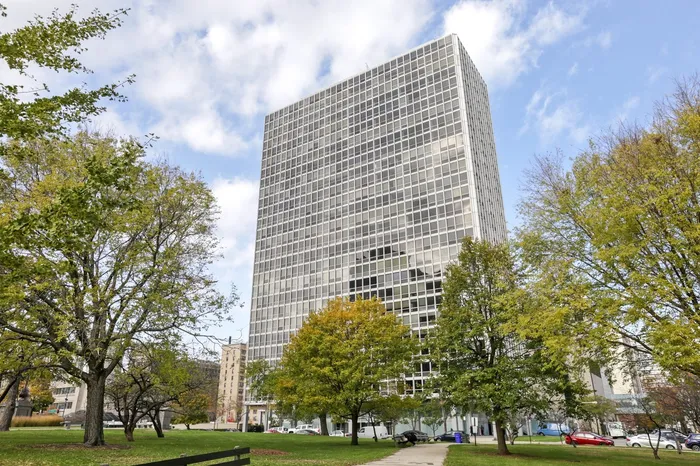 Rarely available south unit at Mies van der Rohe's Commonwealth Plaza with stunning unobstructed skyline, park and lake views from every room! This nicely appointed unit has been freshly updated with new vanity in 2nd bath, rehabbed primary bath, and all HVAC units w/3 separate zones (approximately $10k/piece) have been replaced. Large living room with 18 feet of wall to wall, floor to ceiling glass showcasing skyline views! Hardwood flooring throughout living/dining room and hallway, & cork in both bedrooms. Cooks kitchen features tons of cabinets, breakfast bar, and stainless steel appliances. Master bedroom features en suite bath, walk in closet, and room for a king bed (Bedroom 2 is currently used as primary). Assessment includes full cable package including Showtime & HBO, 2 wireless TiVo boxes, 1 gig fiber internet w/all in one high speed router, & use of all of the amenities. Building features outdoor pool, BBQ area with tons of seating, outdoor playground, herb garden, fitness room and 24 doorperson. Parking available for lease with no wait list. Steps from Trader Joe's, Fresh Market, Mariano's, Diversey Harbor, and CTA buses!