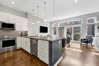 Move right into this impeccable gem at highly desirable Columbia Place in beautiful, tree-lined, Lakeview. All brick and perfectly maintained, this 4 bedroom, 2.1 bath townhome checks off all the boxes. The first floor features heated floors and a great bedroom/den with built in Murphy bed and loads of built-in storage and a smart half bath. Main floor boasts luxury living with pristine hardwood flooring, a sleek open kitchen/living area with deluxe stainless appliances, white cabinetry and flooded with natural light from three large sliding doors that open to a lovely balcony. The excellent layout includes perfect flow into a generous open dining room and living room space with great light and distinctive fireplace with custom built-ins. Upstairs find three bedrooms and two full baths. Primary suite includes huge walk-in closet and ensuite bath with double vanity and large custom tiled glass enclosed shower. In unit washer/dryer and stairway to a wonderful, private rooftop deck complete the floor. Other great features include attached 2 car garage, lovely landscaped front yard enclosed by a wrought iron fence and courtyard. Great location! Burley School District. Steps to parks, shopping and restaurants and all conveniences nearby, including Jewel, Whole Foods, Trader Joe's, Mariano's, Wrigley Field, and the Lake.