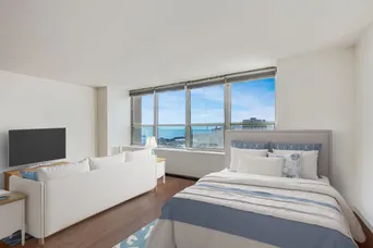 Clear, unobstructed, spectacular lake and city views through a wall of windows on the 41st floor! Fantastic investment property and easy living with everything you could need all in one place. The kitchen includes stainless steel appliances. This freshly painted home boasts easy to clean laminate wood flooring and cordless blinds throughout. Great storage with two full size closets. A city-dweller's dream with a full range of luxury amenities including 24-hour door staff, fully equipped exercise facility, movie theater, outdoor pool, hot tub, BBQ grill area, and basketball court! The building itself also includes a dry cleaning facility and convenience store on site. HOA dues include heat, air conditioning, gas, water, and cable. The perfect pied-a-terre with quick access to Lake Shore Drive and public transportation. Move right in or start collecting rental income! The best deal in town.