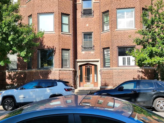Discover classic elegance in this spacious 1 bedroom, 1 bath home, where a stunning west-facing bay window fills the living room with natural light. This elevated first floor home features rich hardwood floors, classic crown molding, high ceilings and a wood-burning fireplace that creates a warm and welcoming ambiance. A professionally designed built-in office nook provides the ultimate setting for productive remote work. Perfect for entertaining, the formal dining room flows seamlessly into the comfortable living room and kitchen. The updated kitchen features sleek 42" solid wood cabinetry, granite countertops, and Bosch stainless steel appliances. The bathroom has been refined with sophisticated finishes and contemporary lighting. A true highlight of the property is the inviting outdoor oasis: a spacious private back deck ideal for quiet morning moments or hosting friends on warm summer nights. A generously sized, secure storage room in the basement and convenient common laundry complete the wish list. Situated in an unbeatable Lakeview East location just steps from the lake, Wrigley Field, public transportation, neighborhood shops and restaurants, and Whole Foods and Jewel, this home offers the perfect blend of comfort, character, and convenience - an exceptional find not to be missed!